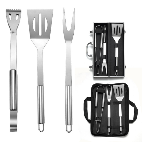 A3105屋外3PCSステンレス鋼バーベキューローストクリップグリルセットオックスフォードバッグブラシバーベキューフォークブロイラーホームバーベキューツールセット